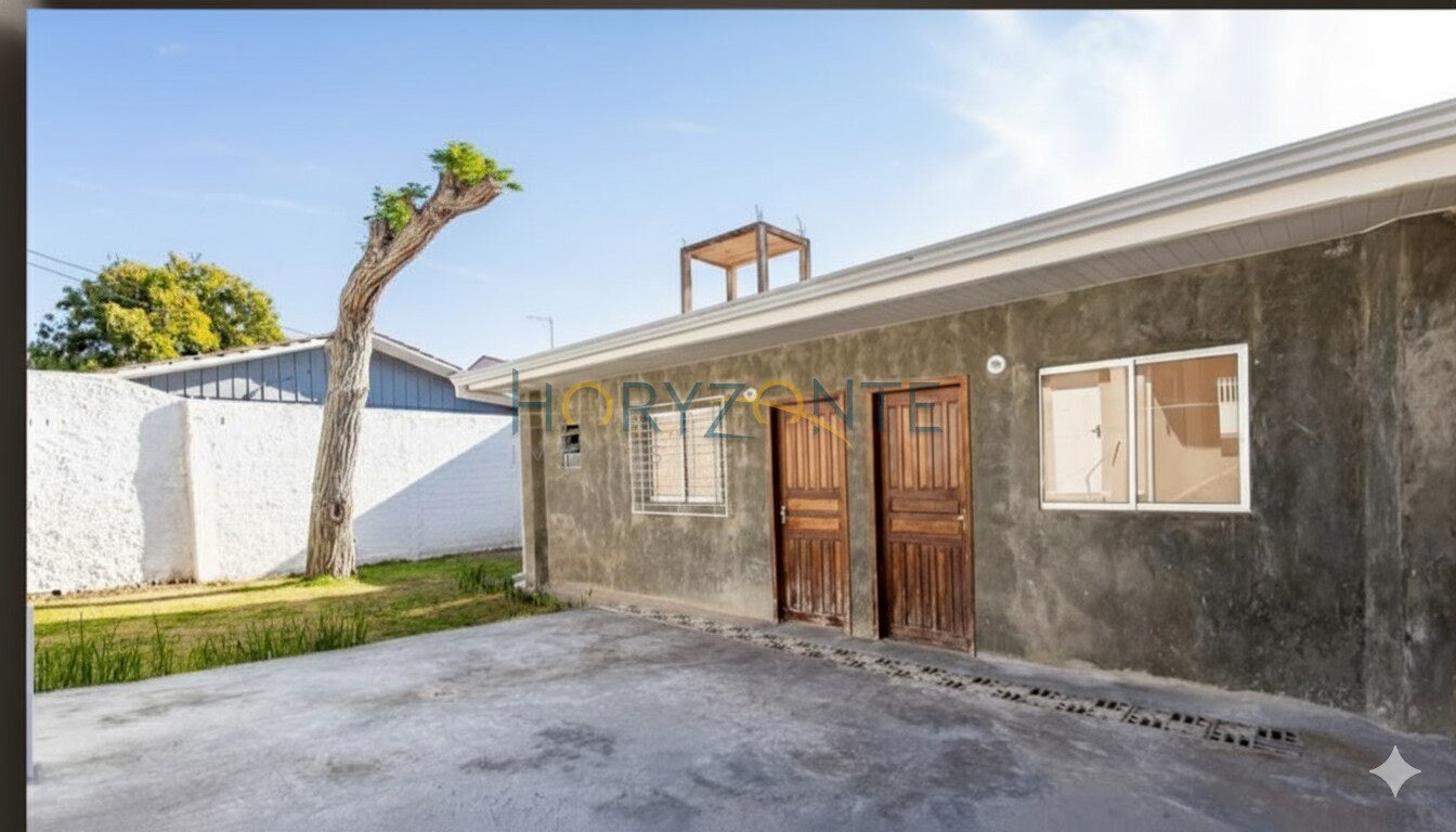 Posicionada no meio do terreno, a casa possui sala de estar, integrada à copa e cozinha, 2 quartos, banheiro social, lavanderia coberta e garagem coberta para 1 carro + 4 vagas descobertas.